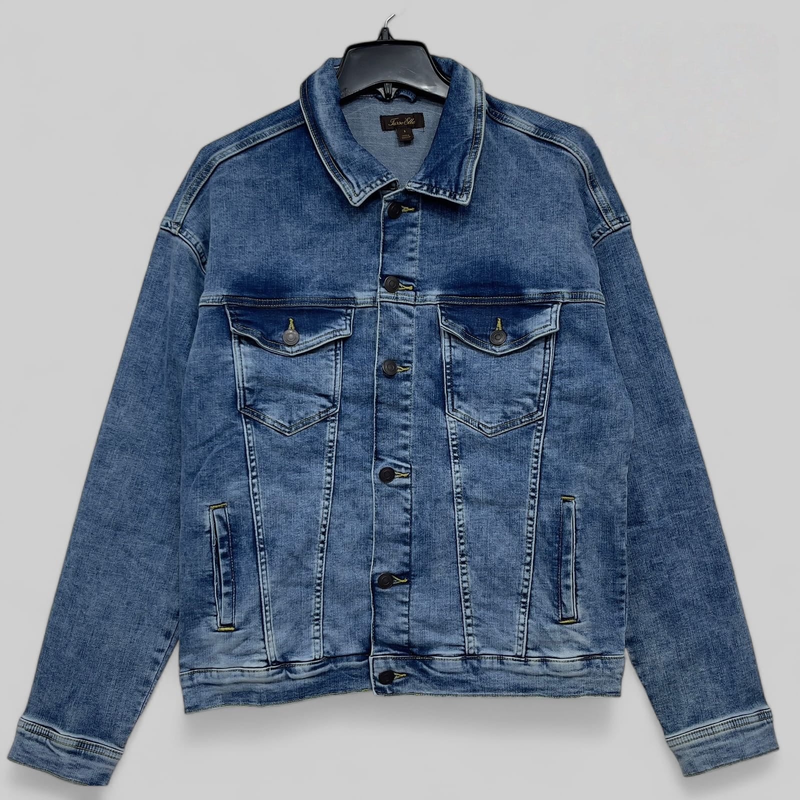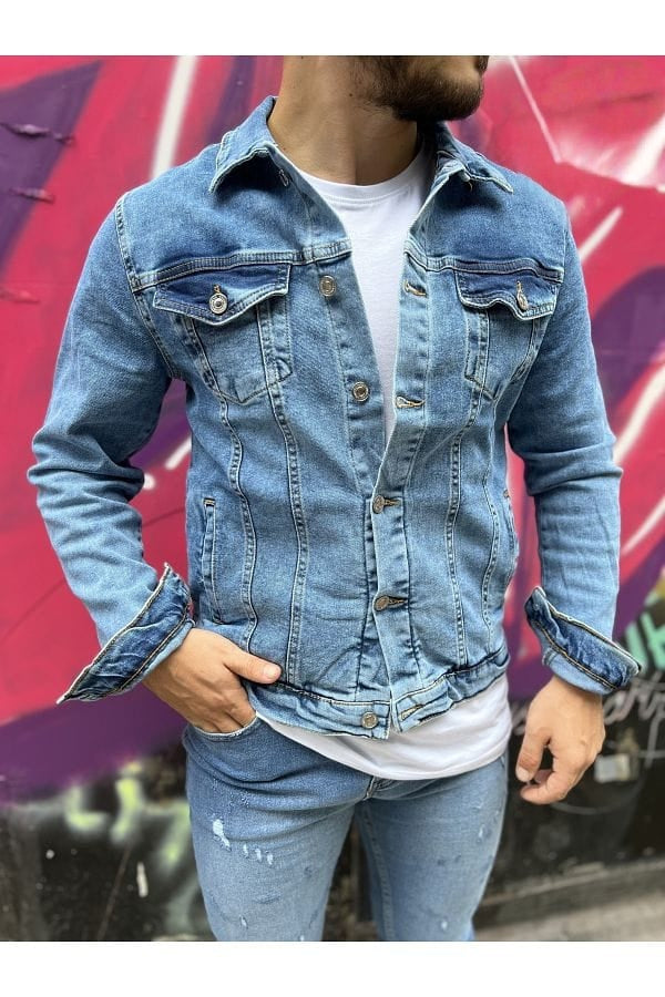This classic men's denim jacket is a timeless wardrobe staple, perfect for creating a stylish and versatile look. Available in two distinct washes—a light acid wash and a darker black denim—this jacket features a traditional button-front closure, two button-flap chest pockets, and two side pockets. The sturdy denim material is designed for durability and comfort, making it ideal for layering over a T-shirt or hoodie. Its classic fit is perfect for any casual occasion, whether you're going out with friends or just running errands.